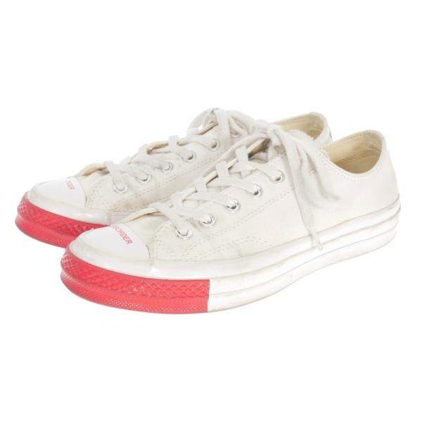 CONVERSE – Chuck 70 OX (コンバース – チャック70 OX):ヴィンテージな雰囲気を再現したCT70は、純白ではなく、少し黄みがかった「エクリュ」や「パーチメント」と呼ばれるオフホワイトのキャンバスを採用しているのが特徴です。この絶妙な色合いが、新品の状態からこなれた印象を与え、古着や洗いざらしの服と完璧に調和します。